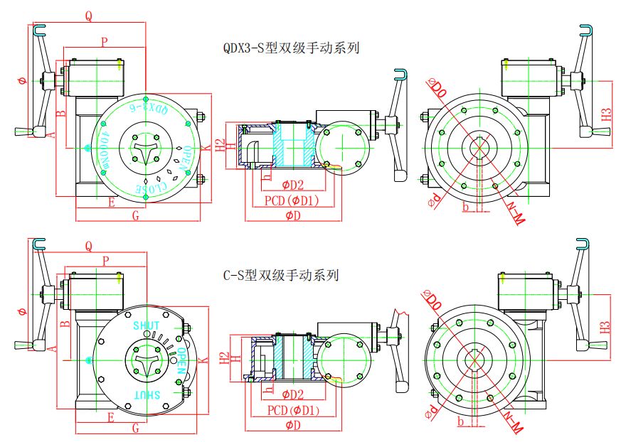 該系列是小蝸輪箱與大蝸輪箱對接組合成為二級傳動蝸輪減速增壓機構,提高了機械總效率,輸入小力矩,開動大閥門,使操作人員省力,每種型號提供多個傳動比,特殊型可輸出360°無限多回轉,能更好的匹配不同規(guī)格的閥門。
