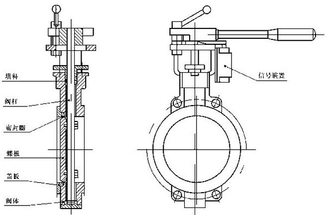 蝶閥根據(jù)連接形式的不同能分成法蘭式蝶閥和對(duì)夾式蝶閥;按照結(jié)構(gòu)形式可以分為中線蝶閥和偏心蝶閥。蝶閥的結(jié)構(gòu)非常的簡(jiǎn)單,有閥體、閥桿、閥座、蝶板和傳動(dòng)機(jī)構(gòu)組成,常見(jiàn)的傳動(dòng)方式有手柄、渦輪、氣動(dòng)、電動(dòng)。下面我們來(lái)針對(duì)蝶閥的結(jié)構(gòu)圖來(lái)對(duì)蝶閥做一個(gè)解析。