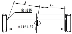 閥體起密封作為的為密封圈,焊接在閥體內(圖5)。在2.5m立車上將組焊好的閥體裝夾在閥體密封圈加工工裝上,將立車刀桿旋轉8°,根據(jù)圖紙設計要求,找正后沿圓錐母線方向走刀,車至未焊不銹鋼前的尺寸。然后堆焊不銹鋼,最后將焊好不銹鋼的閥體重新上立車,按上述方法車閥體密封圈至圖紙要求尺寸。最后在立車刀架上裝磨頭,對閥體密封圈進行磨削處理,使其達到圖紙設計粗糙度要求。