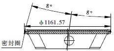 閥體起密封作為的為密封圈,焊接在閥體內(nèi)(圖5)。在2.5m立車上將組焊好的閥體裝夾在閥體密封圈加工工裝上,將立車刀桿旋轉(zhuǎn)8°,根據(jù)圖紙設(shè)計要求,找正后沿圓錐母線方向走刀,車至未焊不銹鋼前的尺寸。然后堆焊不銹鋼,最后將焊好不銹鋼的閥體重新上立車,按上述方法車閥體密封圈至圖紙要求尺寸。最后在立車刀架上裝磨頭,對閥體密封圈進(jìn)行磨削處理,使其達(dá)到圖紙設(shè)計粗糙度要求。