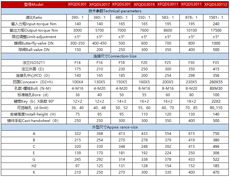 該系列蝸輪箱適用環(huán)境廣、功能全面、形式多樣(有手輪式、手輪帶鎖式等),產品共有7種型號。